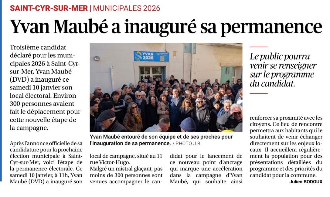 Merci à toutes celles et ceux venus inaugurer ma permanence à Saint-Cyr-sur-Mer Une étape clé dans notre campagne municipale Je tiens à …